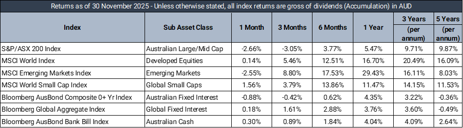 Market Returns - 1 Month to 30 November 2025 (in AUD)